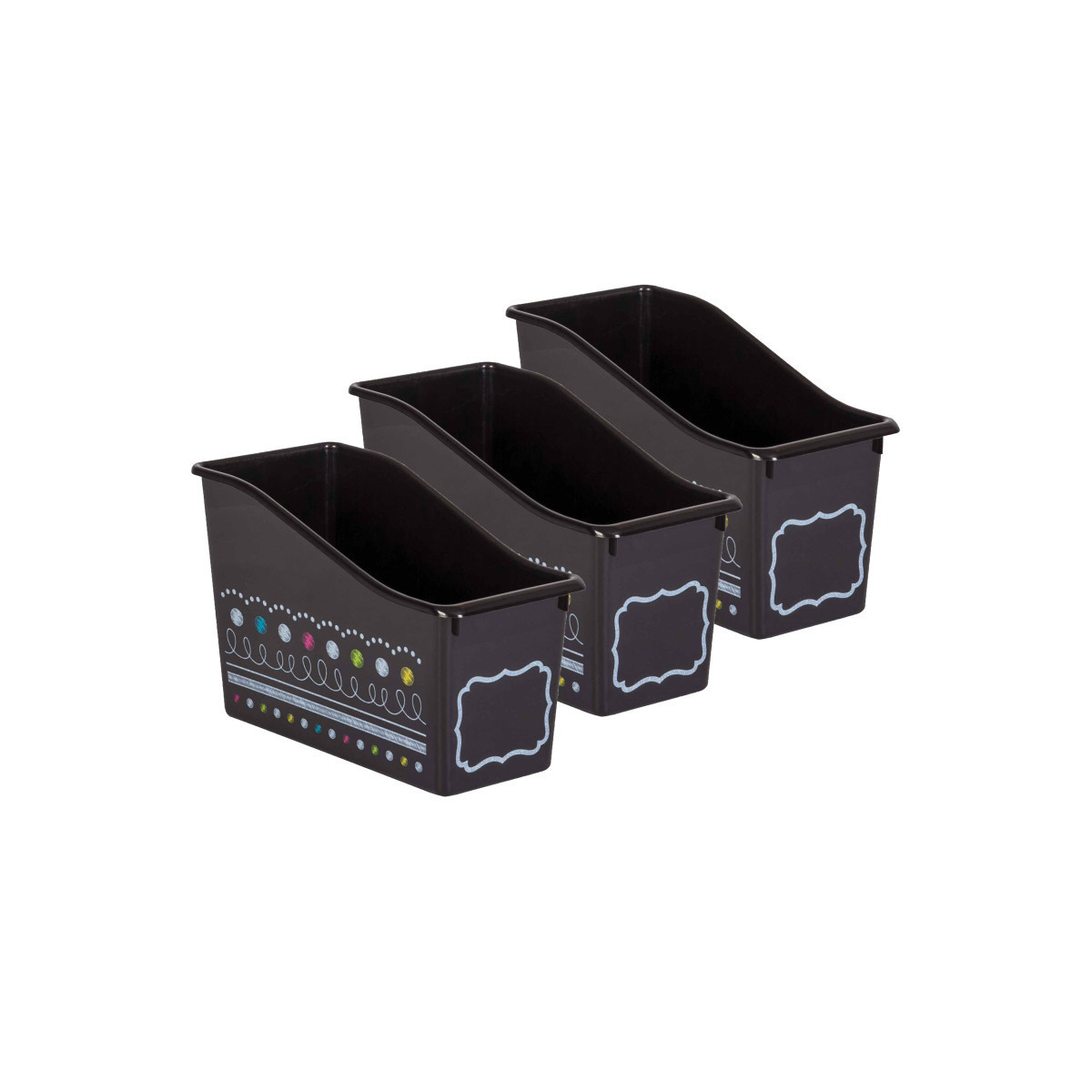 Add a little style to your organization with these plastic book bins. Store books, folders, binders, magazines, notebooks, and much more! Each book bin measures 5-1/2" L x 11-3/8" W x 7-1/2" H. Sold as a pack of 3 book bins.