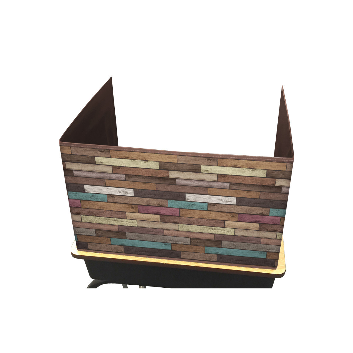 This durable designer Reclaimed Wood Classroom Privacy Screen will brighten up any classroom and help students keep a positive attitude, even during test time! Ideal for reading, testing, or working on individual projects. The non-porous surface is easy to clean and can be wiped-down or sprayed with disinfectant to help prevent the spread of germs. Center Panel: 22"W x 16"H, Side Panels: 14"W x 16"H, Assembled: 22"W x 16"H x 14"D