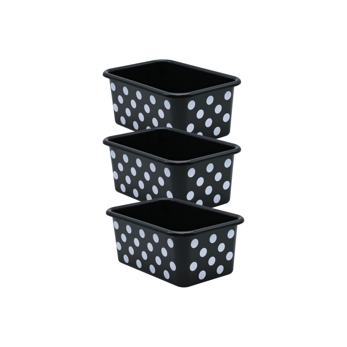 Teacher Created Resources® White Polka Dots on Black Small Plastic Storage Bin, Pack of 3