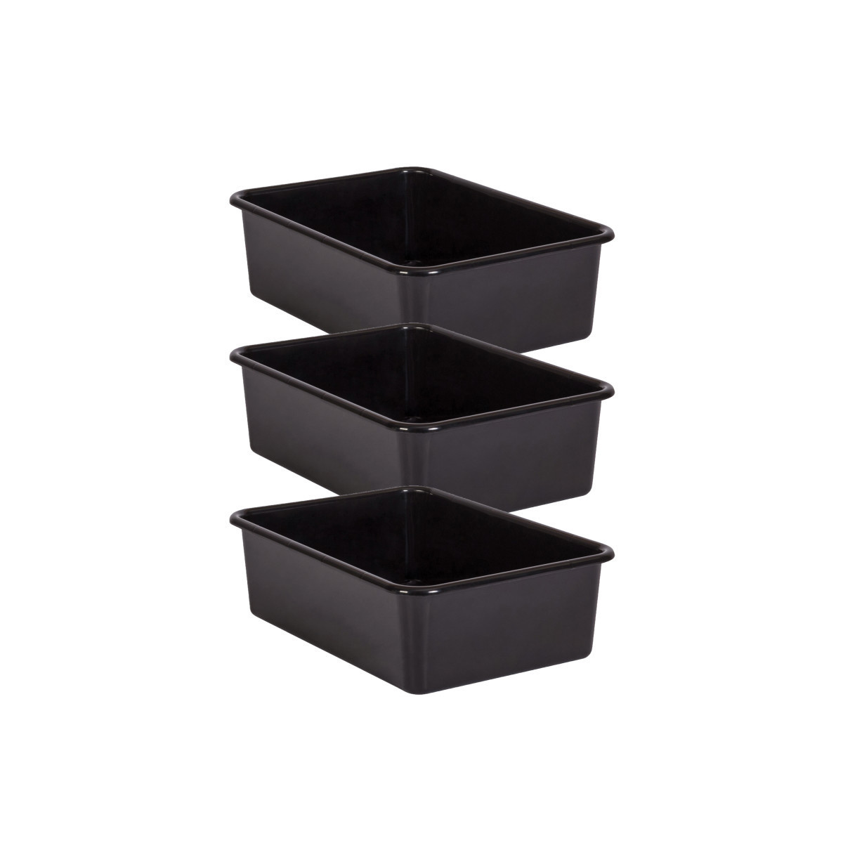 Create a beautifully organized classroom with these large storage bins. Keep books, notepads, toys, games, and supplies in these decorative organizers that feature a sturdy plastic design. Multiple bins can be stacked for easy storage. Each bin measures 16-1/4 "L x 11-1/2"W x 5"H. Sold as a pack of 3 bins.