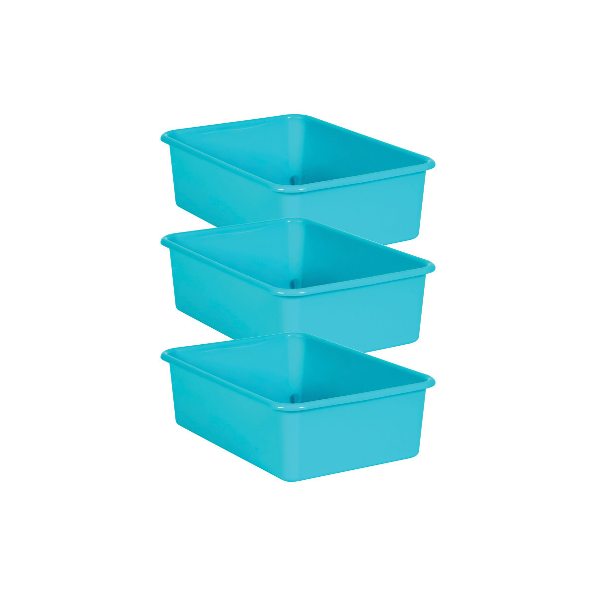 Create a beautifully organized classroom with these large storage bins. Keep books, notepads, toys, games, and supplies in these decorative organizers that feature a sturdy plastic design. Multiple bins can be stacked for easy storage. Each bin measures 16-1/4 "L x 11-1/2"W x 5"H. Sold as a pack of 3 bins.
