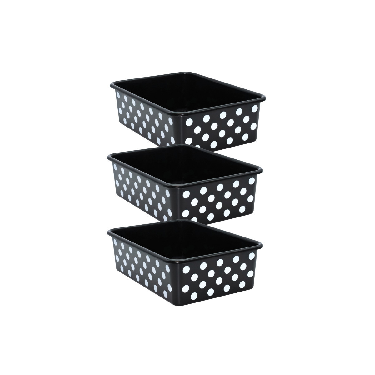 Teacher Created Resources® White Polka Dots on Black Large Plastic Storage Bin, Pack of 3