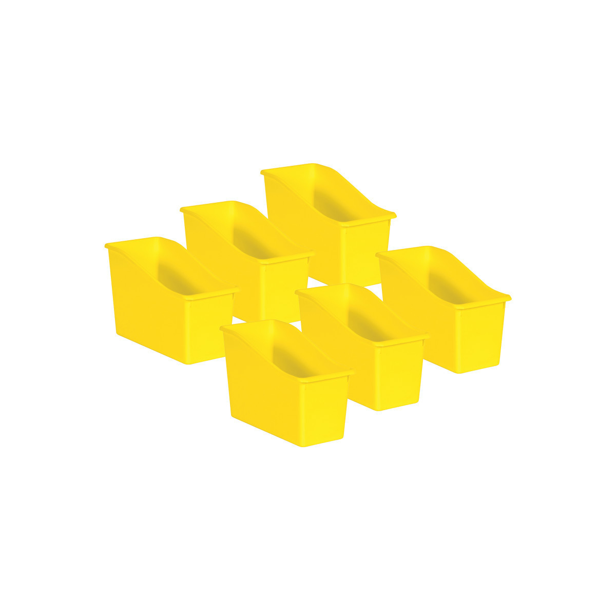 Add a little style to your organization with these plastic book bins. Store books, folders, binders, magazines, notebooks, and much more! Each book bin measures 5 1/2" L x 11 3/8" W x 7 1/2" H. Great plastic organizer! Sold as a pack of 6 bins.