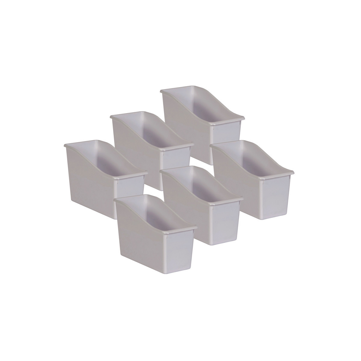 Add a little style to your organization with these plastic book bins. Store books, folders, binders, magazines, notebooks, and much more! Each book bin measures 5 1/2" L x 11 3/8" W x 7 1/2" H. Great plastic organizer! Sold as a pack of 6 bins.