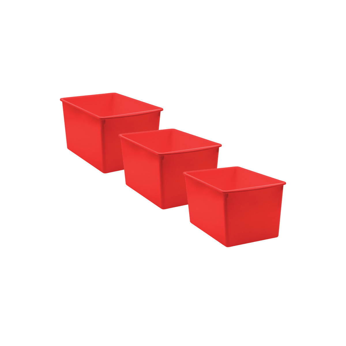 Keep items organized and close at hand and the rest of your space clutter-free with these multi-purpose bins. Large enough for papers, books, notebooks, and other materials, these sturdy bins corral supplies and can be stacked for easy storage. Each bin is BPA free and measures 14"L x 9-1/4"W x 7-1/2"H. Our plastic storage solutions feature on-trend designs and vibrant colors. Mix and match your favorite style of storage bins and caddies to create a color-coordinated classroom that's as beautiful as it is functional. Sold as a pack of 3 bins.
