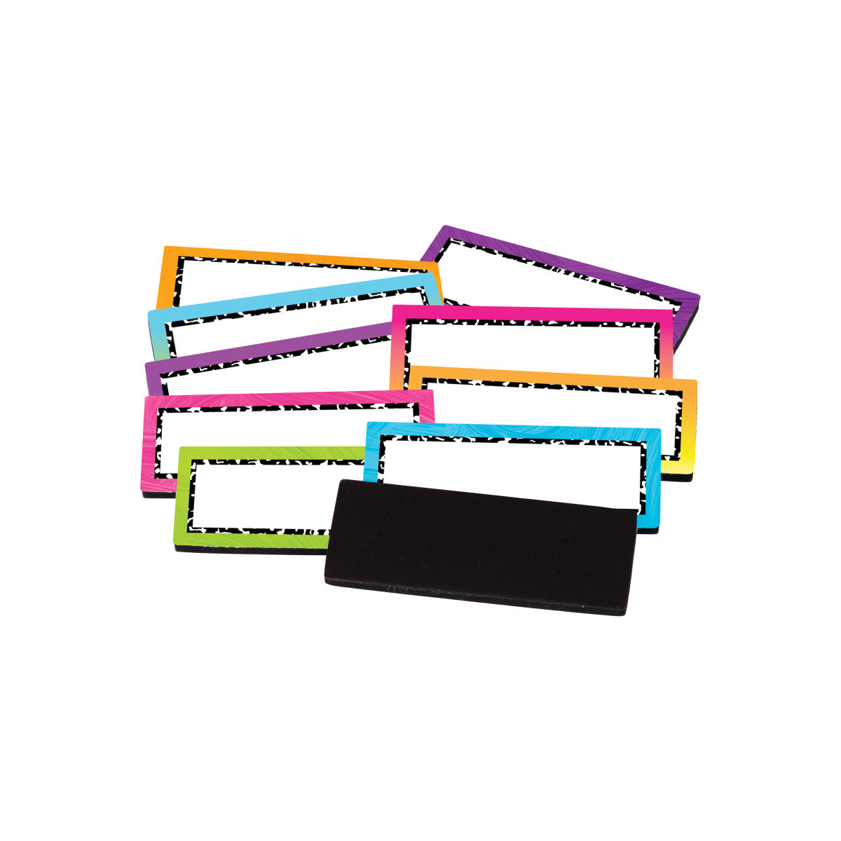 Multi-purpose labels have a write-on/wipe-off surface and magnetic back. Use on dry erase boards and cabinets. Each pack includes 30 labels: 3 each of 10 designs. Measures 2-1/2" x 1".