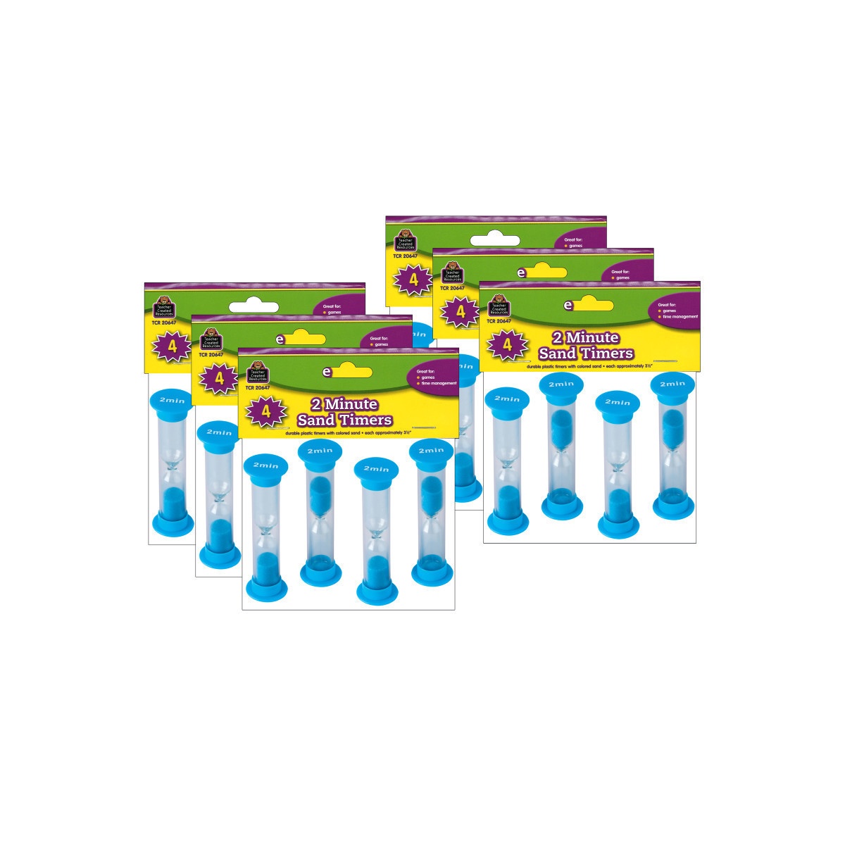 Race to see how much can be accomplished before time runs out. Great for games, timed test, and time management. Handy plastic timers with colored sand. Includes suggested activities. Each timer measures 1" x 3.5". Each pack includes 4 timers. Sold as 6 packs for a total of 24 timers.