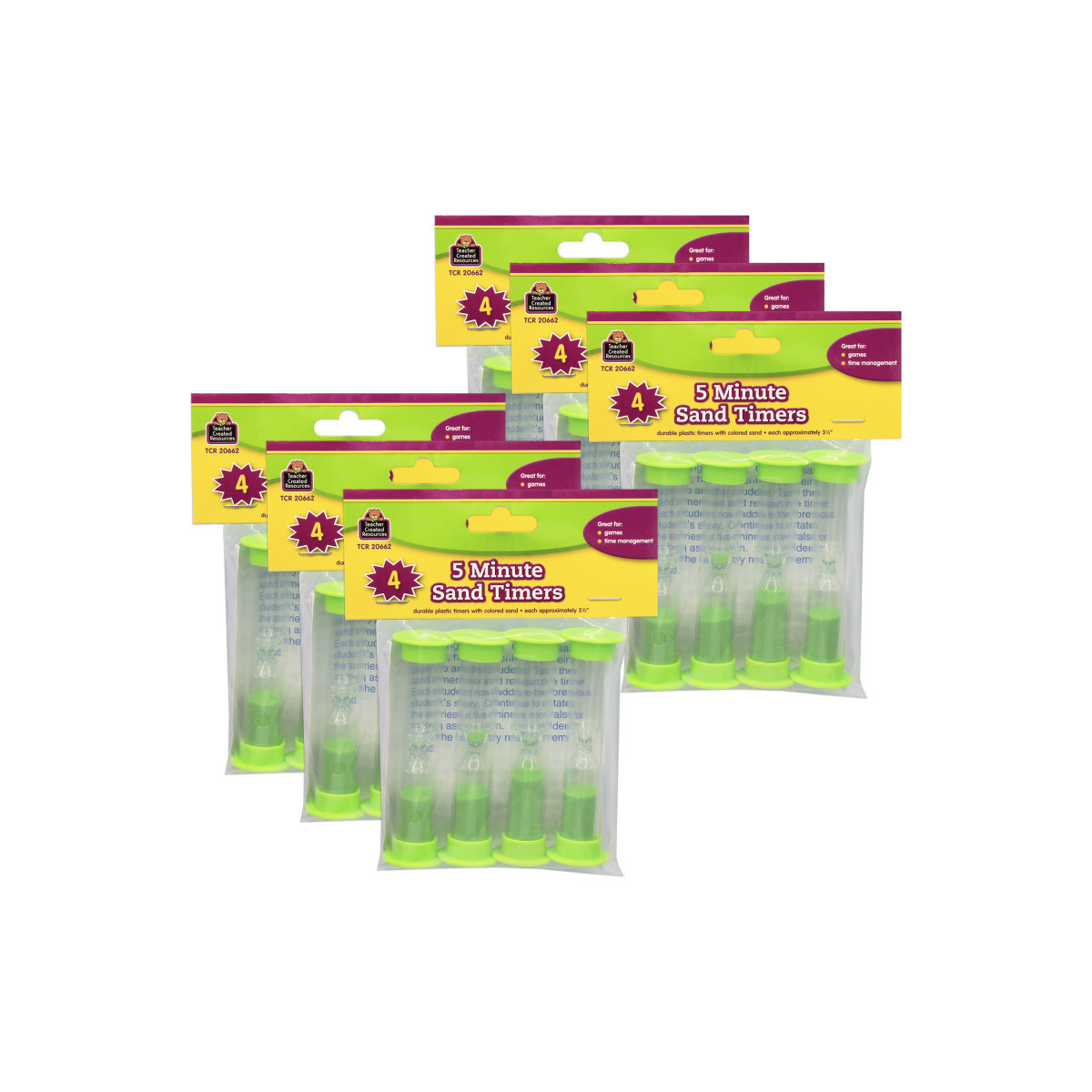 Race to see how much can be accomplished before time runs out. Great for games, timed test, and time management. Handy plastic timers with colored sand. Includes suggested activities. Each timer measures 1" x 3.5". Each pack includes 4 timers. Sold as 6 packs for a total of 24 sand timers.
