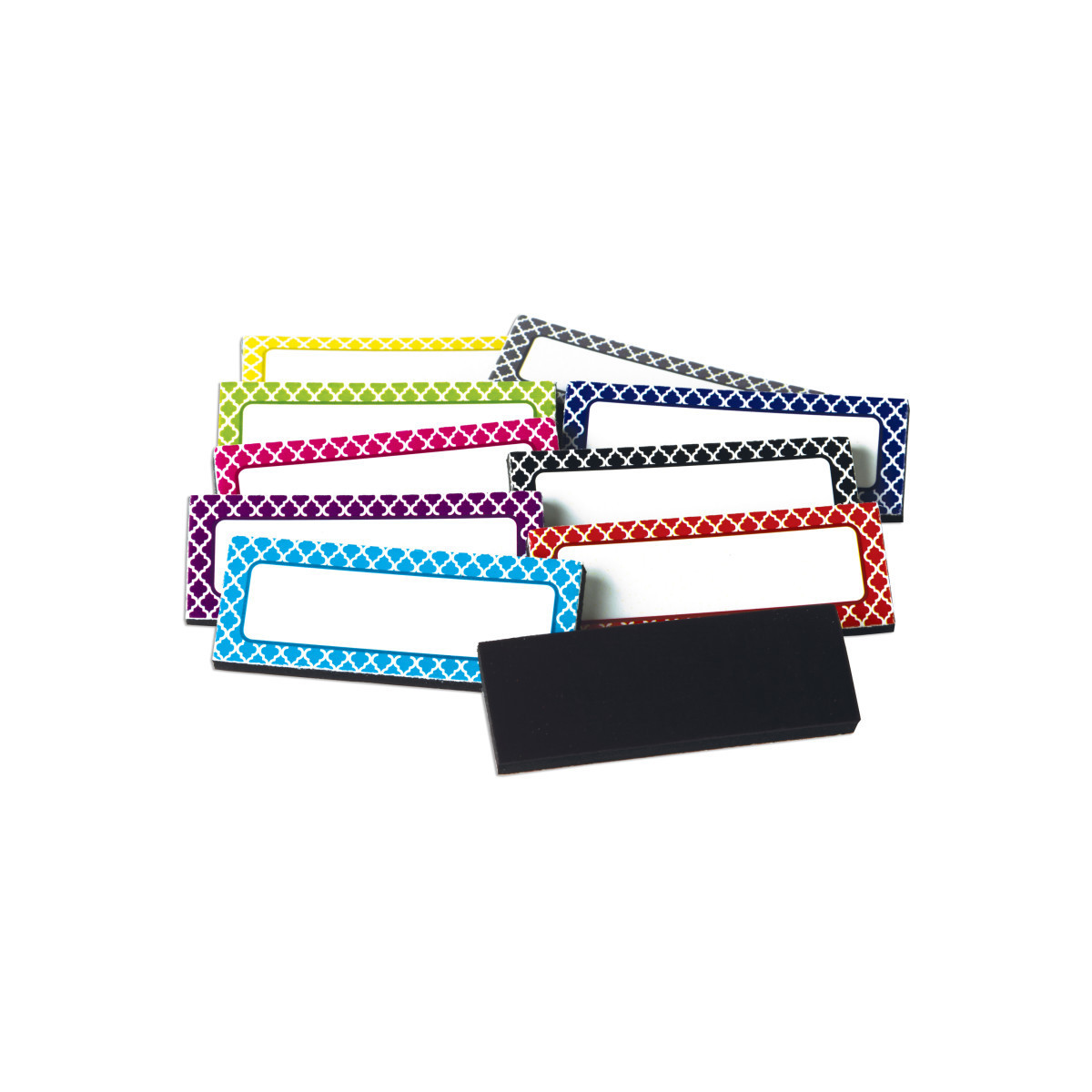 Multi-purpose labels have a write-on/wipe-off surface and magnetic back.