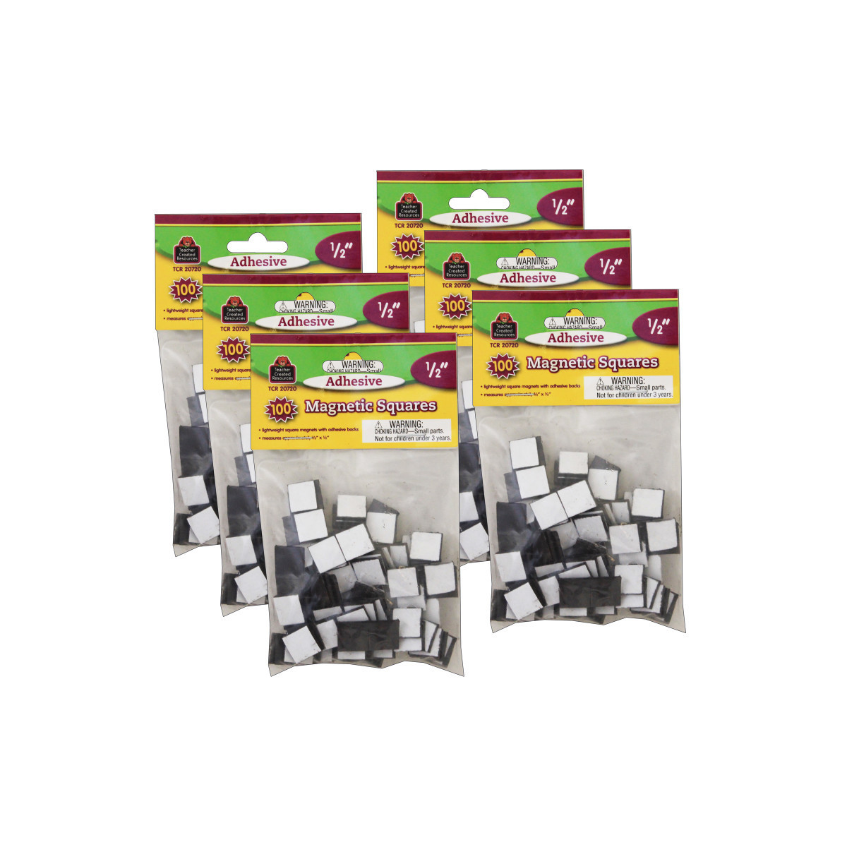 Peel the adhesive side of these handy pre-cut squares and stick them to accents and cutouts, photos, calendars, and student artwork. Then, stick the magnetic side on to file cabinets, metal doors, whiteboards, or any other magnetically receptive surface. Each square measures 1/2". Each pack includes 100 squares. Sold as 6 packs for a total of 600 magnetic squares.