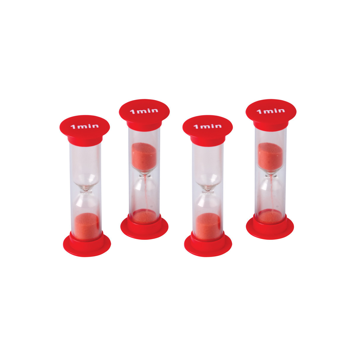 Race to see how much can be accomplished before time runs out. Great for games, timed tests, and time management. Handy plastic timers with colored sand. Includes suggested activities. Timers measure 1" x 2-1/2". Each pack includes 4 sand timers.