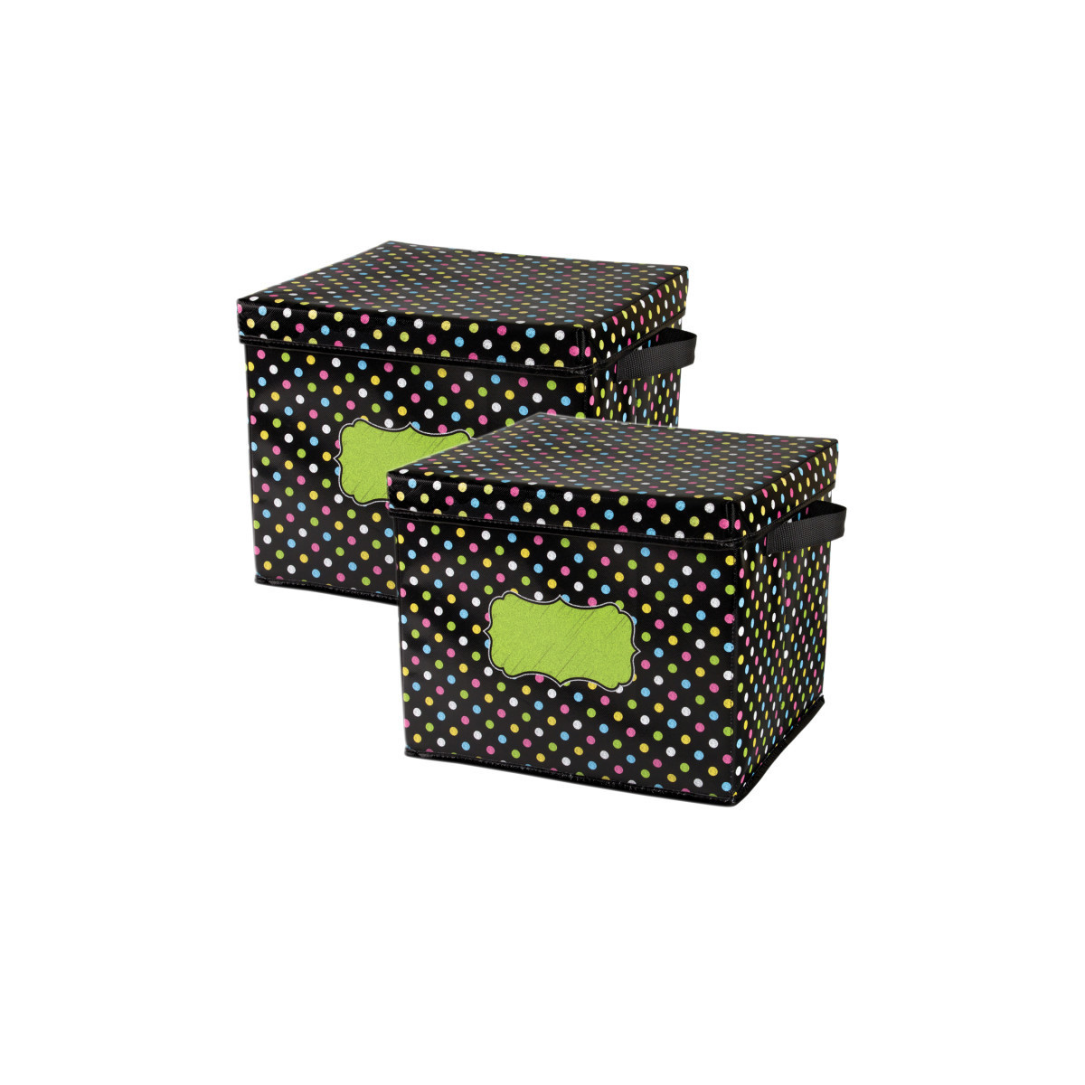 Classroom organization is easy with these decorative storage boxes and bins. Keep manipulatives, books, notepads, educational toys, games, and supplies in these decorative organizers that feature a write-on/wipe-off surface for convenient labeling and easy cleaning. The durable bins can also be folded for easy storage so you can take them out and use them year after year. Approximately 12" x 13" x 10.5". Each box includes lid. Sold as a pack of 2 storage boxes with lid.