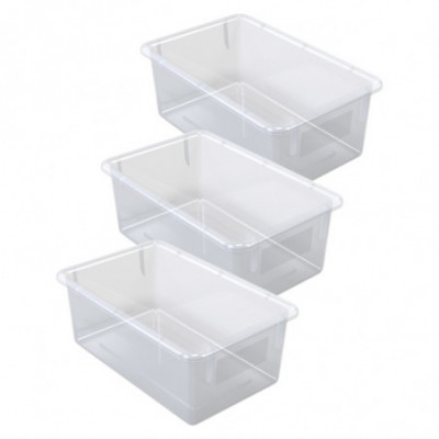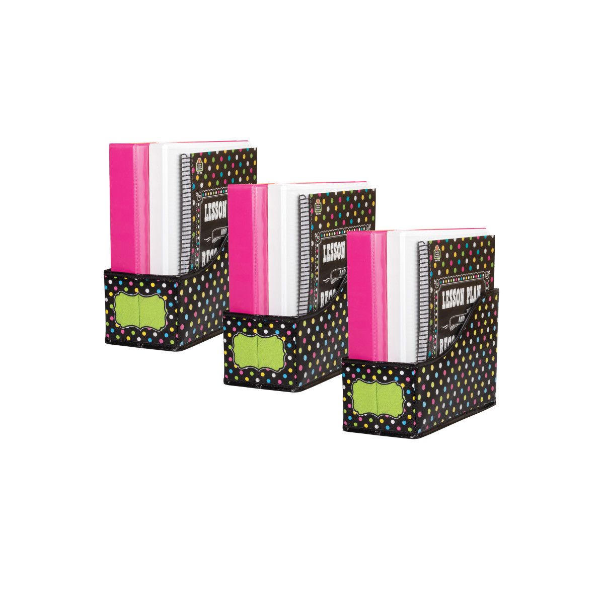 Organize your classroom with style using these durable, designer book bins. Store books, folders, binders, magazines, notebooks, and much more! Features a write-on/wipe-off surface for convenient labeling and easy cleaning. Coordinate with your classroom theme! Measures 5" W x 8" H x 11" D. Pack of 3 book bins.
