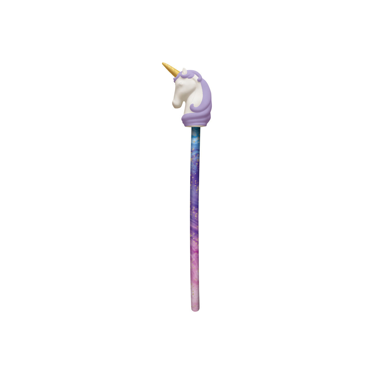 Grab your students' attention with this colorful unicorn pointer. The twinkling sky design of the handle, colorful hair, and gold horn make this pointer fun for you and your class. Use it to help focus their attention and encourage active participation. Approximately 16-1/2".