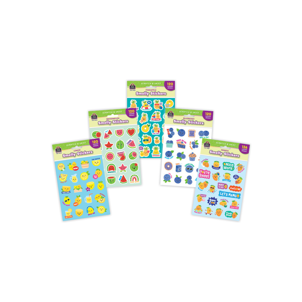 606 FUN FRUIT SMOOTHIE-THEMED SMELLY STICKERS: Each pack includes 606 total stickers in 101 unique fruit-themed scratch-and-sniff designs and measures approximately 2-1/4" to 5/8". Smelly Stickers provide an enjoyable way to reward good work, helping create a positive, encouraging classroom environment.