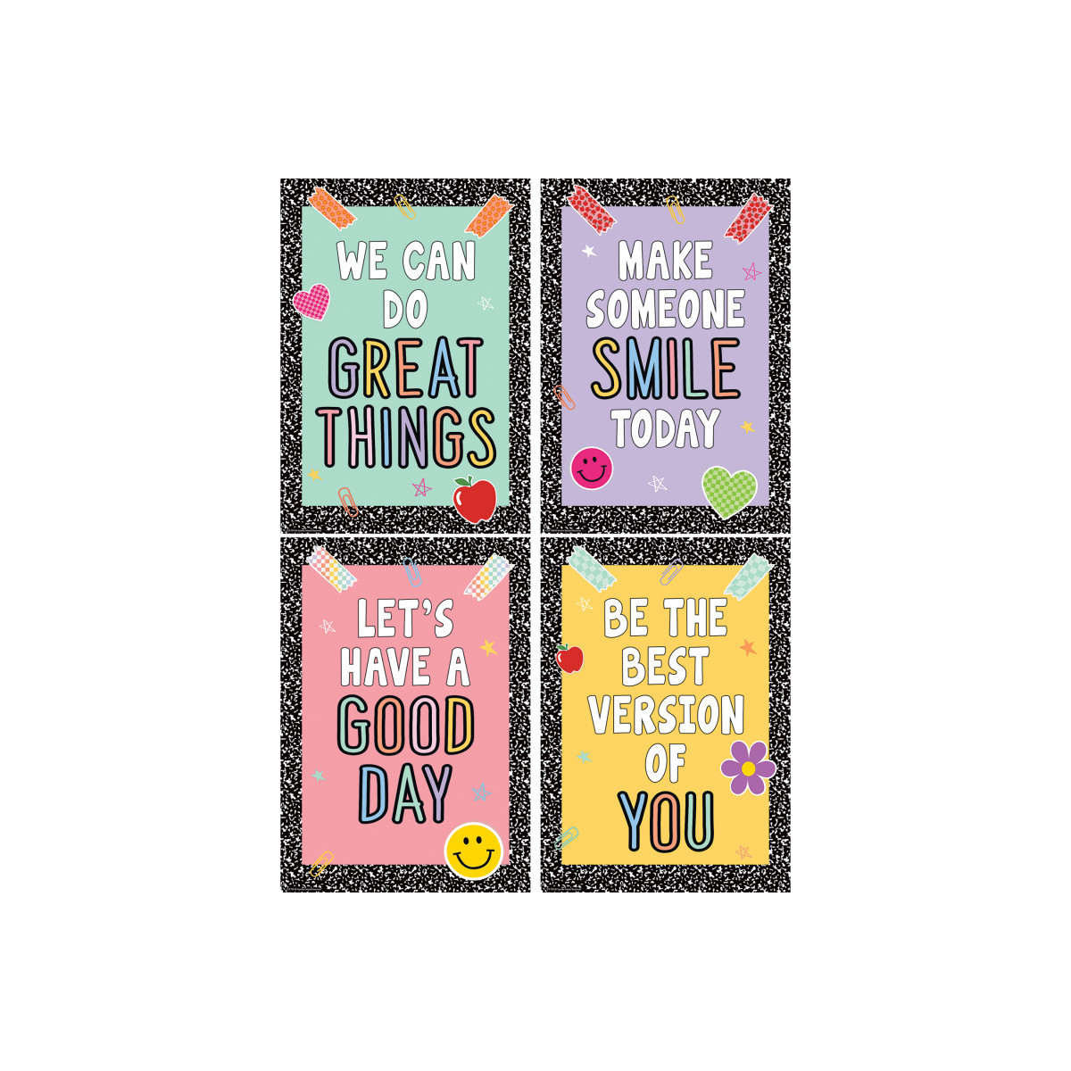 These colorful and engaging posters are perfect for classrooms and at-home learning. Each poster features a coated surface for added durability. Posters Inspire and motivate kids of all ages. Posters measure 13-3/8" x 19". Set contains 4 posters.