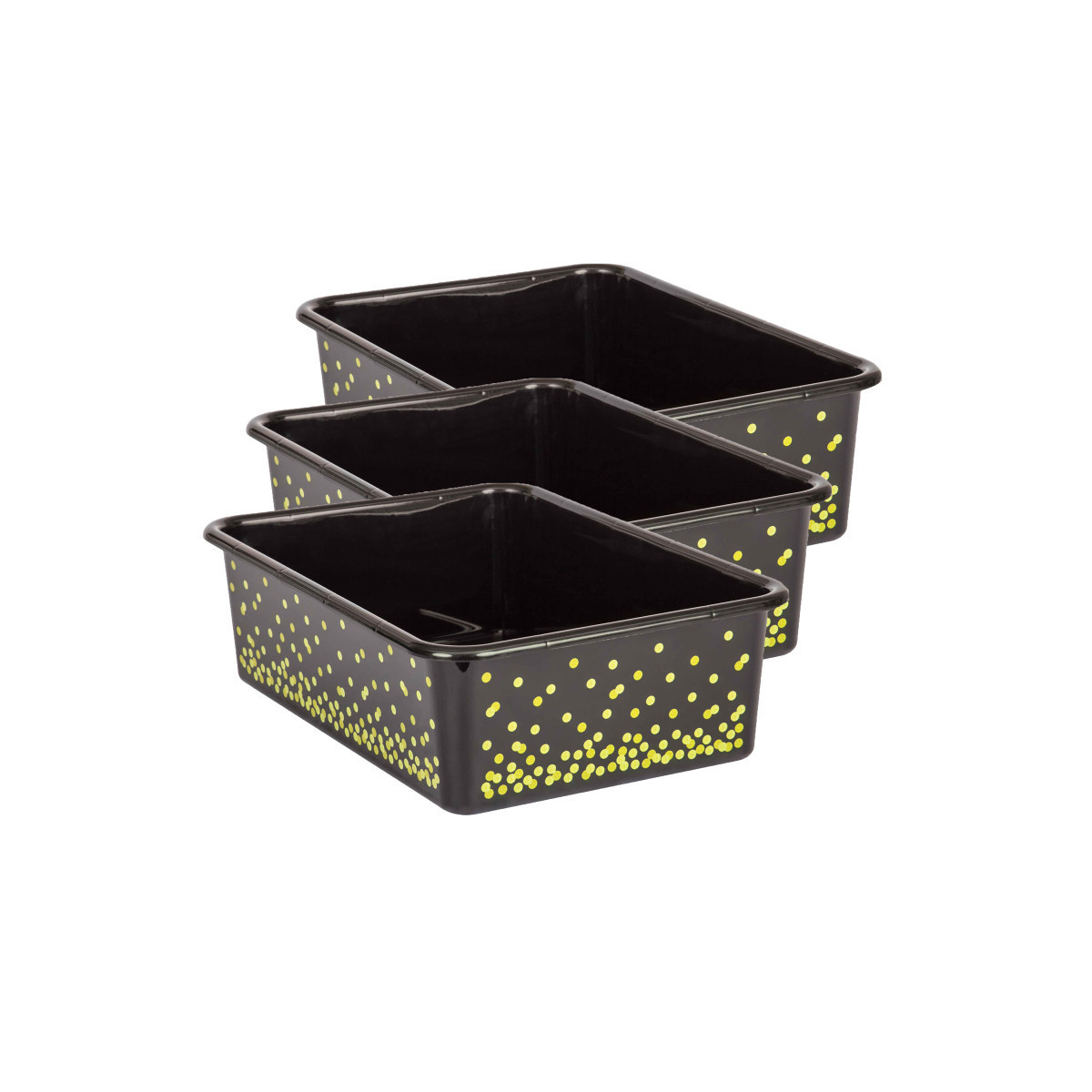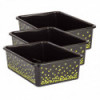 Create a beautifully organized classroom with these large storage bins. Keep books, notepads, toys, games, and supplies in these decorative organizers that feature a sturdy plastic design. Multiple bins can be stacked for easy storage. Each bin measures 16-1/4 "L x 11-1/2"W x 5"H. Sold as a pack of 3 bins.