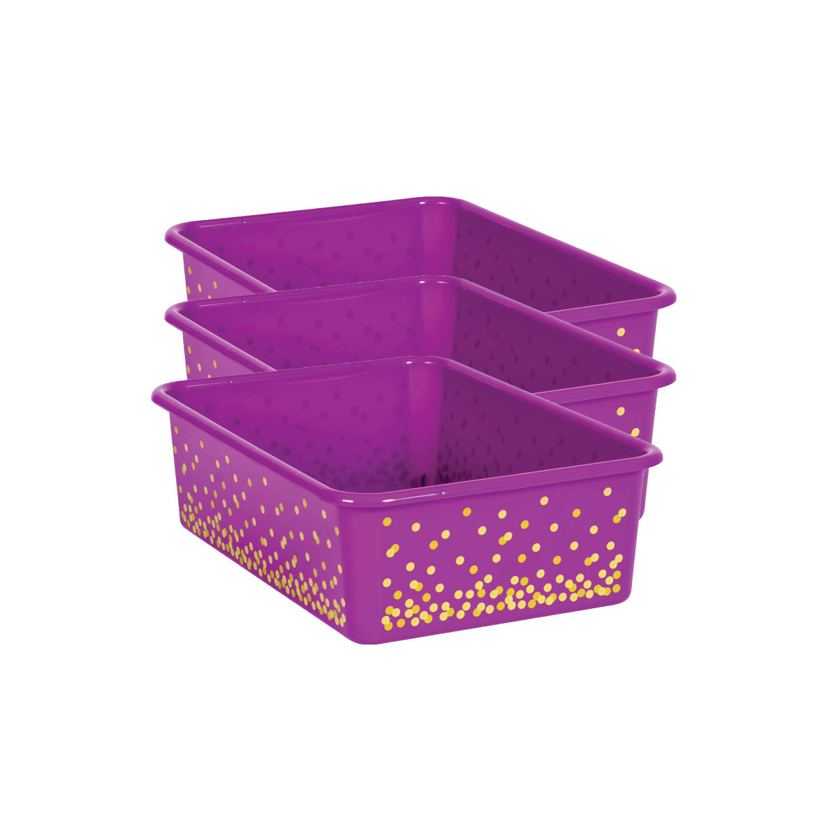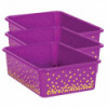Create a beautifully organized classroom with these large storage bins. Keep books, notepads, toys, games, and supplies in these decorative organizers that feature a sturdy plastic design. Multiple bins can be stacked for easy storage. Each bin measures 16-1/4 "L x 11-1/2"W x 5"H. Sold as a pack of 3 bins.
