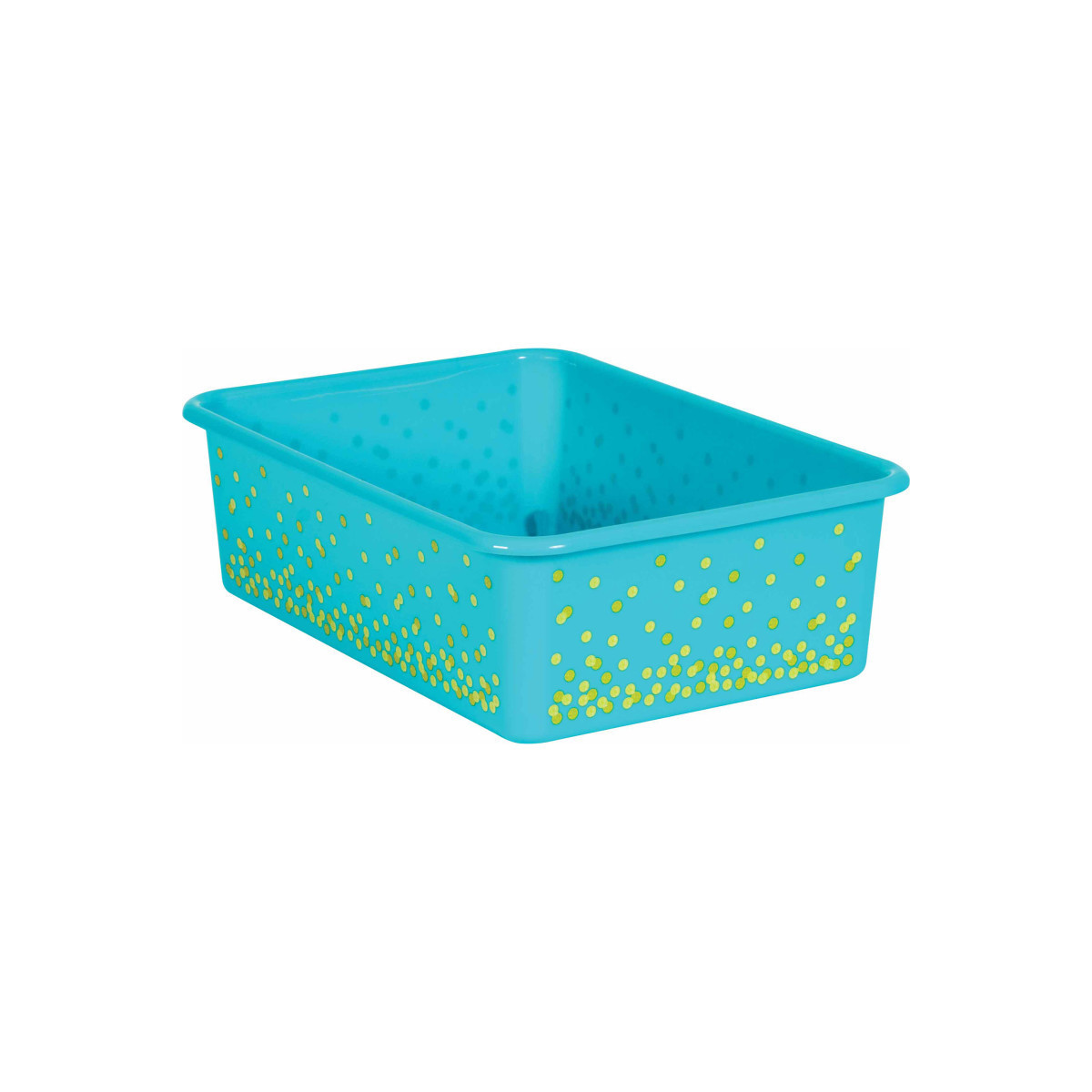 Create a beautifully organized classroom with these large storage bins. Keep books, notepads, toys, games, and supplies in these decorative organizers that feature a sturdy plastic design. Multiple bins can be stacked for easy storage. Each bin measures 11-1/2" L x 16-1/4" W x 5" H.