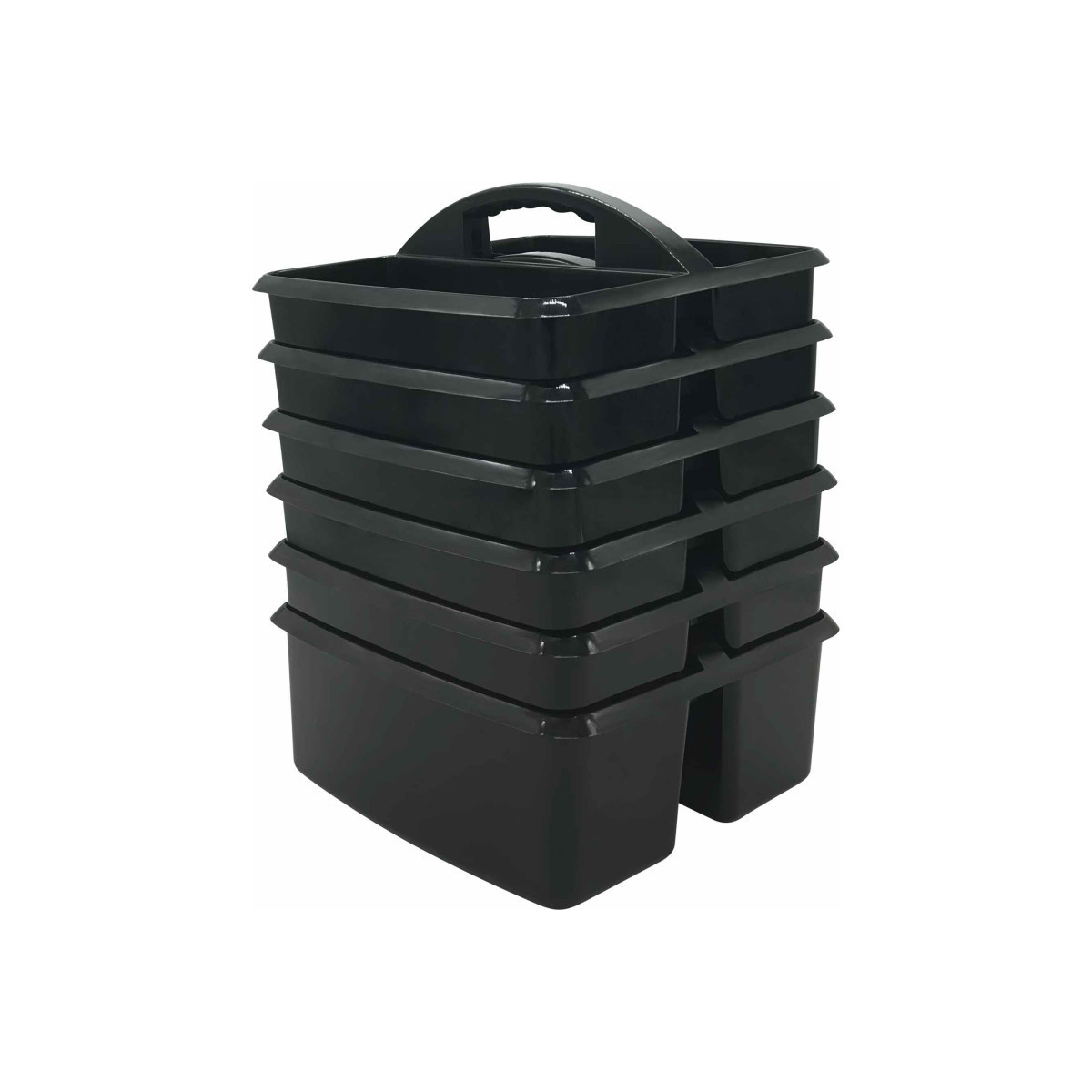 These storage caddies are a handy tote for your markers, calculators, timers, manipulatives, and many more small items that you want to keep within reach. These caddies are made from durable plastic and includes divided compartments for easy organizing. Each caddy measures 9" L x 9-1/4" W x 5-1/4" H. Sold as a pack of 6 caddies.