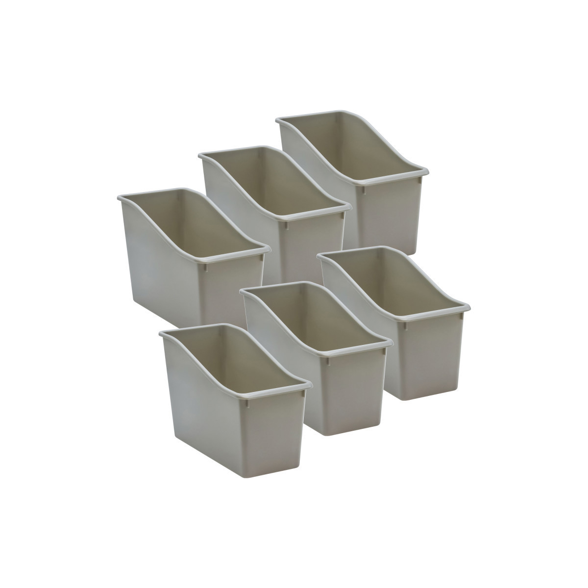 Add a little style to your organization with these plastic book bins. Store books, folders, binders, magazines, notebooks, and much more! Each book bin measures 5-1/2"L x 11-3/8"W x 7-1/2"H. BPA Free. Sold as a pack of 6 book bins.