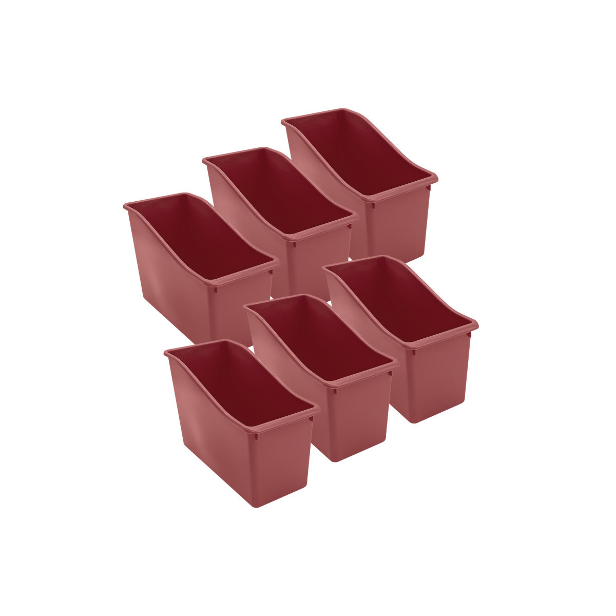 Add a little style to your organization with these plastic book bins. Store books, folders, binders, magazines, notebooks, and much more! Each book bin measures 5-1/2"L x 11-3/8"W x 7-1/2"H. BPA Free. Sold as a pack of 6 book bins.