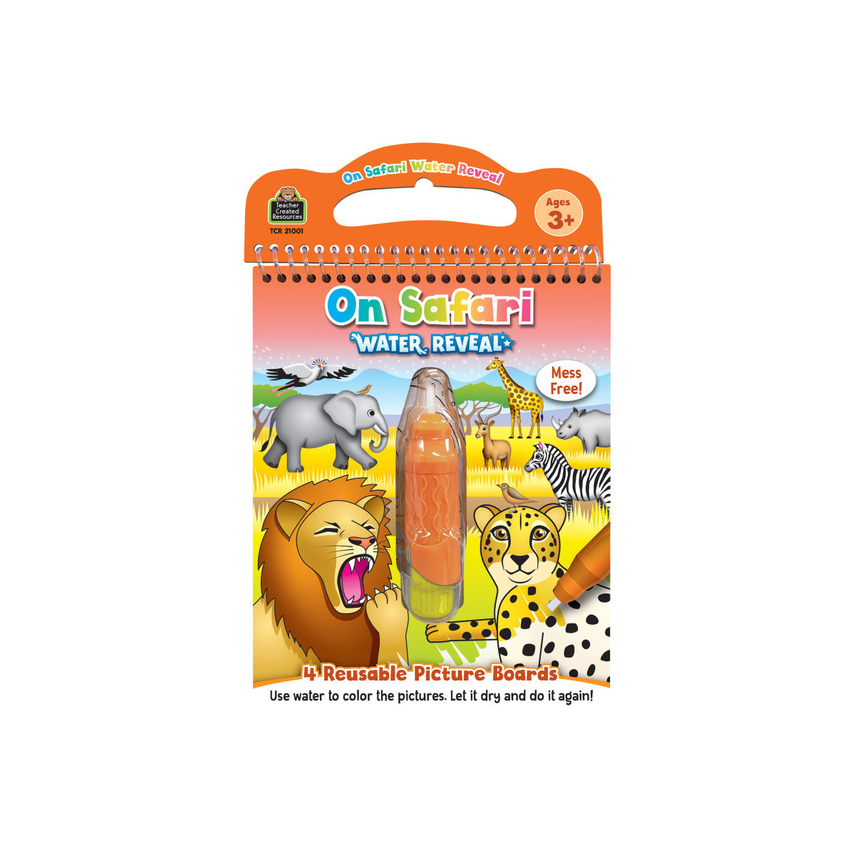 Take your students on a journey through the safari! This water reveal book gives students the opportunity to search and find a variety of safari animals. Mess free! Use water to color the pictures. Let it dry and do it again! Includes search and find activities plus an educational fact. Comes with 4 reusable picture boards and 1 refillable water pen. Ages 3+.
