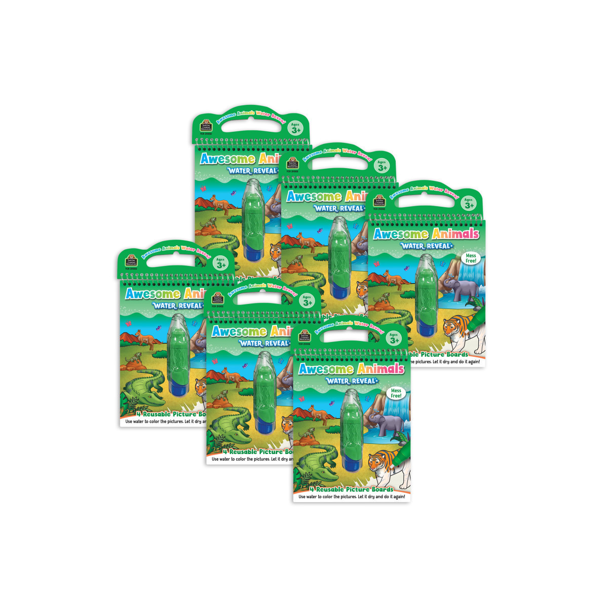 Students will travel through a variety of landscapes and discover awesome animals with this water reveal book. Mess free! Use water to color the pictures. Let it dry and do it again! Includes search and find activities plus an educational fact. Ages 3+. Each book includes 4 reusable picture boards and 1 refillable water pen. Sold as a pack of 6 water reveal books.