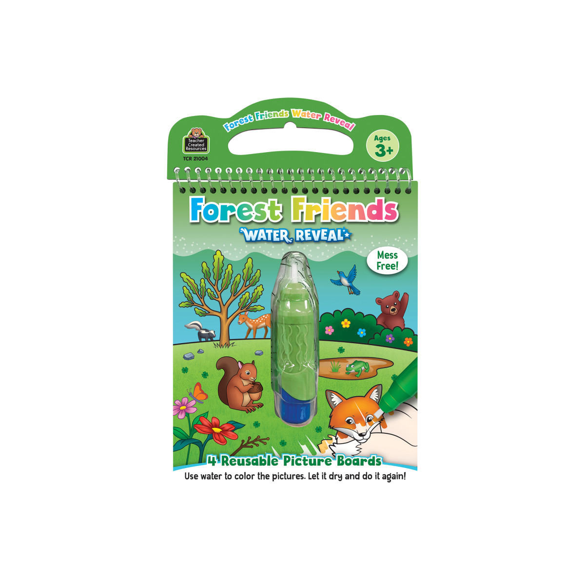 Mess free! Use water to color the pictures. Let it dry and do it again! Each board has search and find activities plus an educational fact. Take your students on an adventure through the jungle to meet some forest friends! Includes 4 reusable picture boards and 1 refillable water pen.
