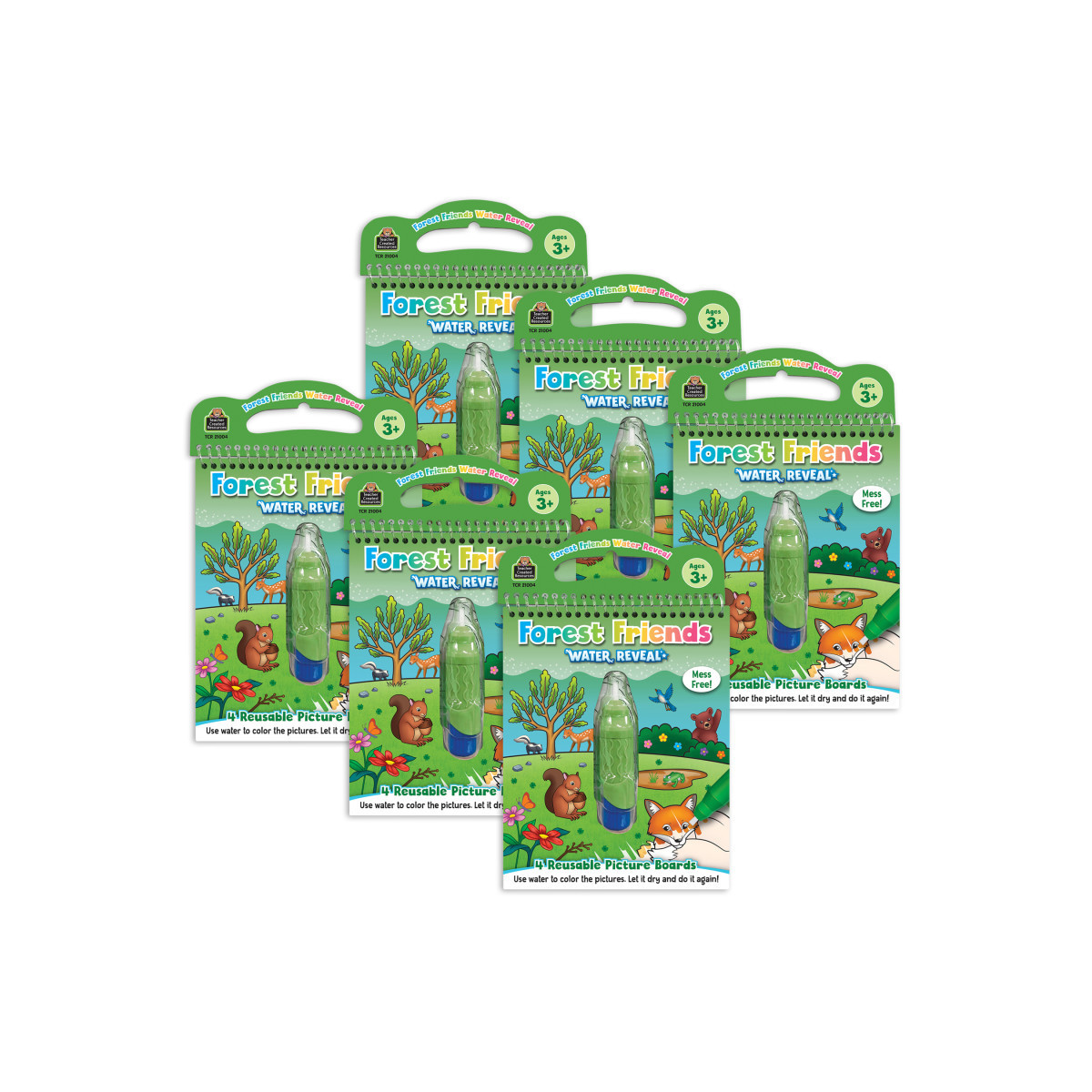 Mess free! Use water to color the pictures. Let it dry and do it again! Each board has search and find activities plus an educational fact. Take your students on an adventure through the jungle to meet some forest friends! Each book includes 4 reusable picture boards and 1 refillable water pen. Sold as a pack of 6 water reveal books.