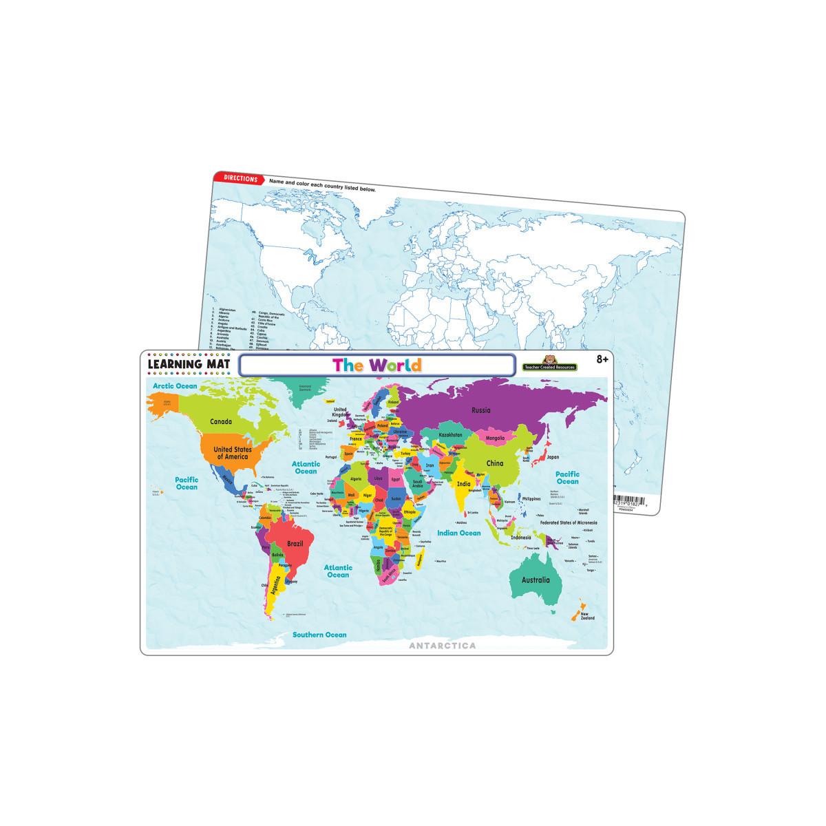 With this advanced learning mat, students will be able to quickly learn world geography! This durable write-on/wipe-off mat provides endless hours of learning and practicing essential skills. Great for at-home, for a fun meal-time activity, or take it on-the-go to use in the car or while eating out. Ages 8+.