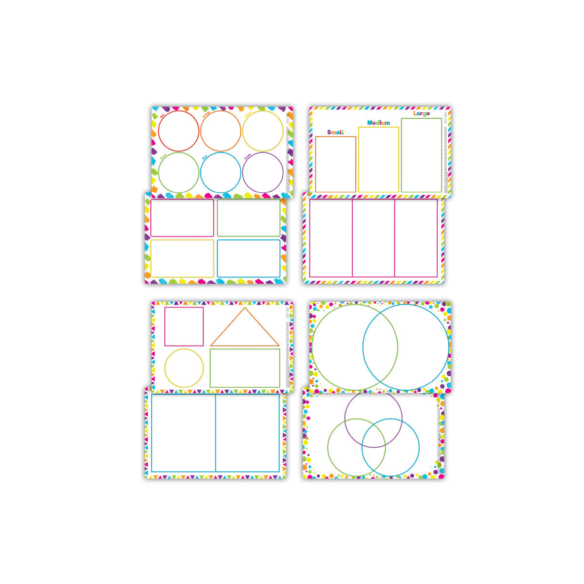 Discover the educational potential of these double-sided and full-color sorting mats. The 8 graphic organizers make learning to sort, classify, categorize, rank, and compare easy with the use of counters, manipulatives, or dry-erase crayons. Designed for both classroom engagement and at-home enjoyment, these mats encourage interactive practice all year long. Easy to clean and sanitize for repeated use. 4 total sorting mats.