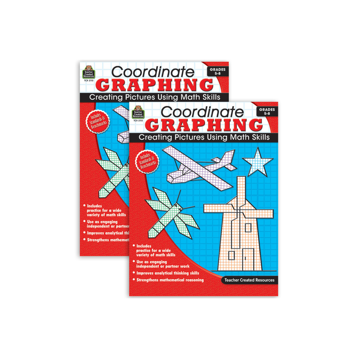 Add intrigue to math lessons that cover equations, fractions, percents, geometry, probability, and more! In each of 59 activities, students solve problems to find specific points to plot on graph paper. As they come up with the correct answers, they create pictures ranging from a dragonfly to a gas pump! Includes practice for a wide variety of math skills. Provides engaging activities suitable for independent or partner work. Improves analytical thinking skills and strengthens mathematical reasoning. Sold as a pack of 2 books.