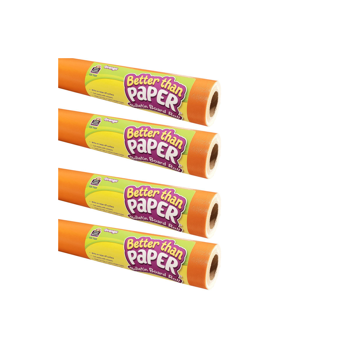 This revolutionary non-woven fabric makes creating beautiful bulletin board backdrops quick and easy! The lightweight material is simple to hang—no more struggling with paper that wrinkles and tears. Attach border trim, accents, posters, and student work with staples or tape and remove without ripping or leaving conspicuous holes. The durable write-on/wipe-off surface is easy to clean and can be wiped-down or sprayed with disinfectant to help prevent the spread of germs. Roll measures 4' x 12'. Pack of 4 rolls. Better Than Paper® has been tested, and is not considered to be a flammable solid material according to the Consumer Products Safety Commission 16 CFR 1500.3(c)(6)(vi)