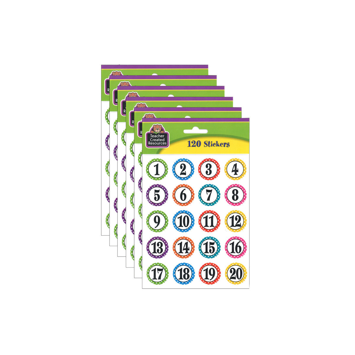 Stickers are acid-free and lignin-free. Measures approximately 1" diameter. Each pack includes 120 stickers: 3 each of numbers 1-40. Sold as 6 packs for a total of 720 number stickers.