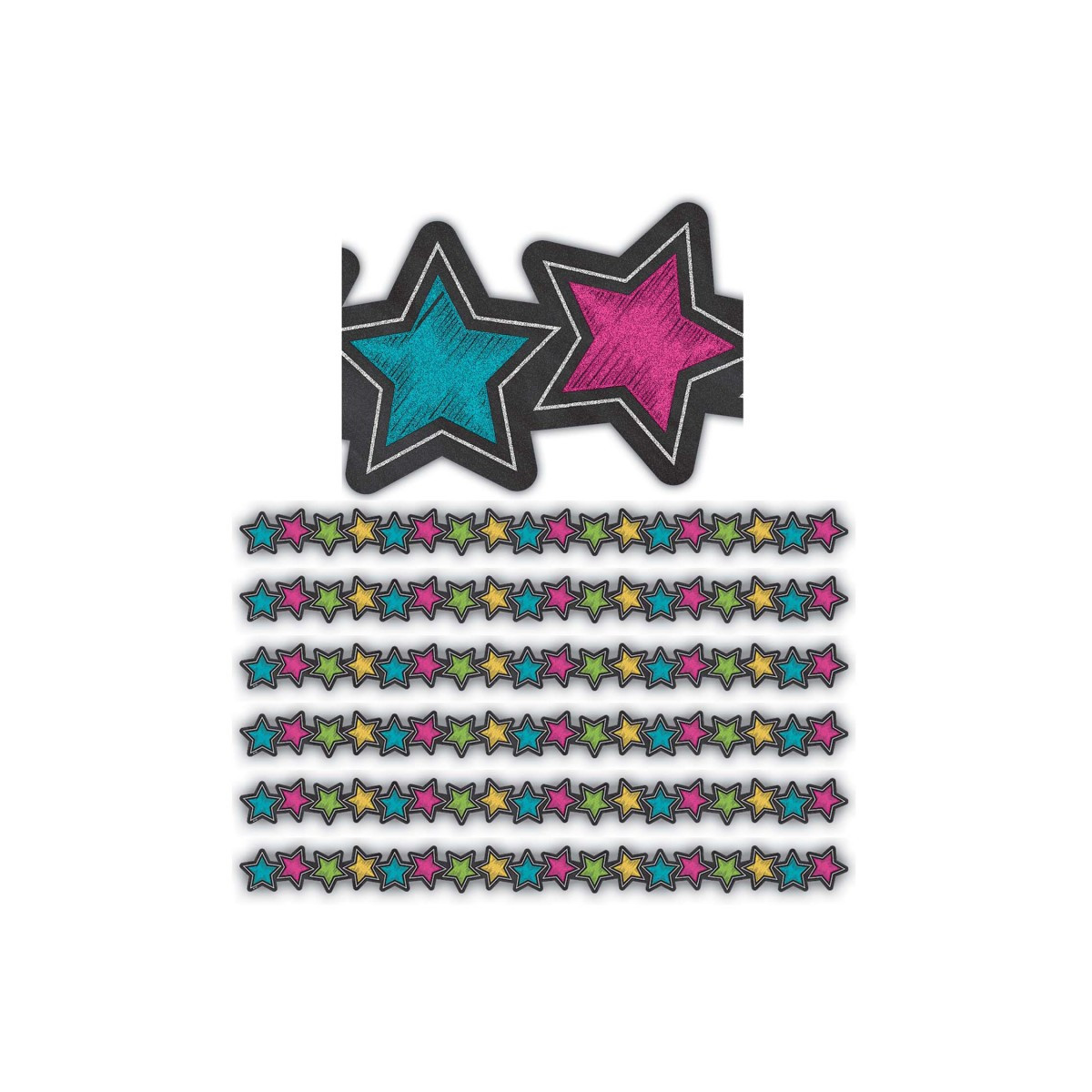 Use colorful border trim to liven up your classroom! Create fresh looks for bulletin boards, windows, walls, and class projects. Mix and match with coordinating products (stickers, notepads, awards, etc.) for a classroom theme. Each pack includes 12 pieces (approximately 2-3/4'' x 35'') for a total length of about 35 feet of trim! Sold as 6 packs for a total of 72 pieces (210 feet).