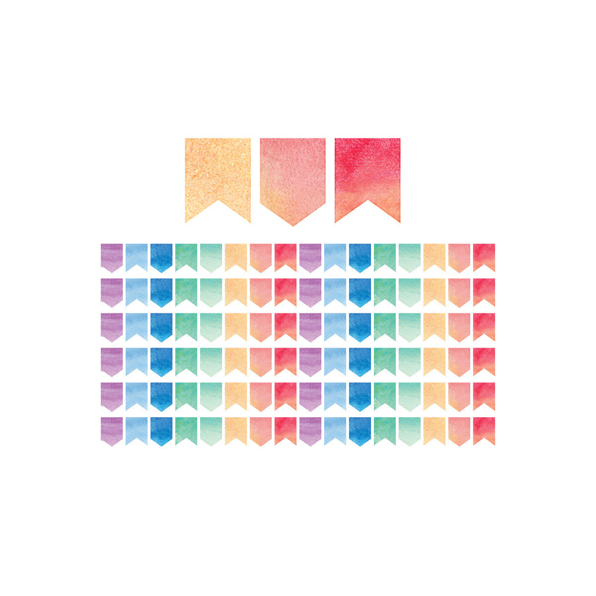 Use colorful border trim to liven up your classroom! Create fresh looks for bulletin boards, windows, walls, and class projects. Mix and match with coordinating products (stickers, notepads, awards, etc.) for a classroom theme. Each pack has 12 pieces (2¾'' x 35'') for a total length of 35 feet of trim. Sold as 6 packs for a total of 72 strips (210 feet).