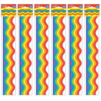Use colorful border trim to liven up your classroom! Create fresh looks for bulletin boards, windows, walls, and class projects. Mix and match with coordinating products (stickers, notepads, awards, etc.) for a classroom theme. Each pack has 12 pieces (2-3/16'' x 35'') for a total length of 35 feet of trim! Sold as 6 packs for a total of 72 strips (210 Feet).