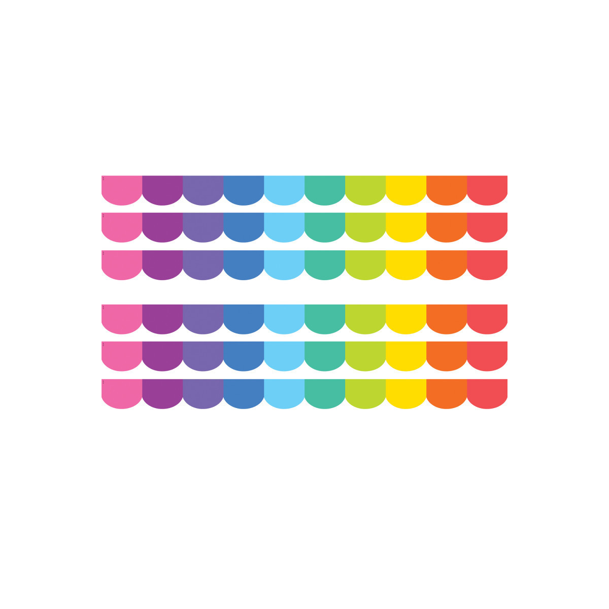 Use Colorful Scalloped Die-Cut border trim to liven up your classroom! Create fresh looks for bulletin boards, windows, walls, and class projects. Mix and match with coordinating products (stickers, notepads, awards, etc.) for a classroom theme. Each pack has 12 pieces (2-3/16" x 35") for a total length of 35 feet of trim! Sold as 6 packs for a total of 72 pieces (210 feet).