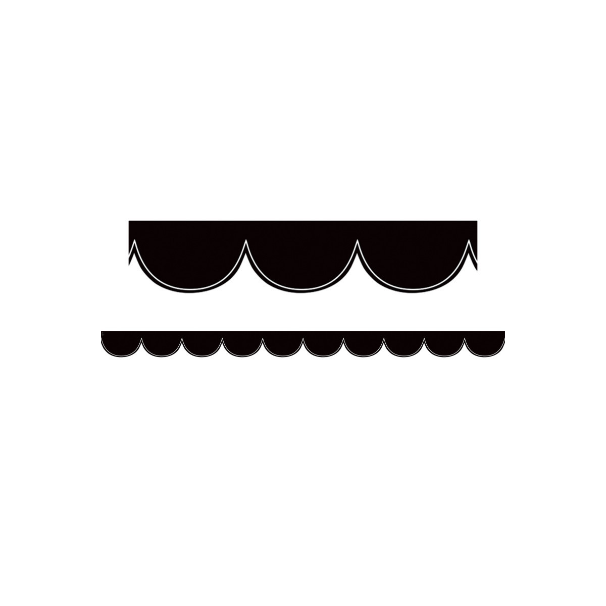 Use White and Black Scalloped Die-Cut Scalloped border trim to liven up your classroom! Create fresh looks for bulletin boards, windows, walls, and class projects. Mix and match with coordinating products (stickers, notepads, awards, etc.) for a classroom theme. Each pack has 12 pieces (2-3/16" x 35") for a total length of 35 feet of trim!