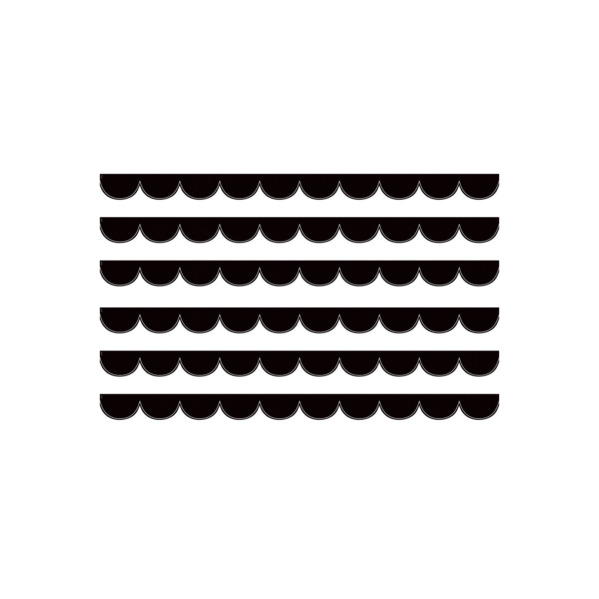 Use White and Black Scalloped Die-Cut Scalloped border trim to liven up your classroom! Create fresh looks for bulletin boards, windows, walls, and class projects. Mix and match with coordinating products (stickers, notepads, awards, etc.) for a classroom theme. Each pack has 12 pieces (2-3/16" x 35") for a total length of 35 feet of trim! Sold as 6 packs for a total of 72 pieces (210 feet).