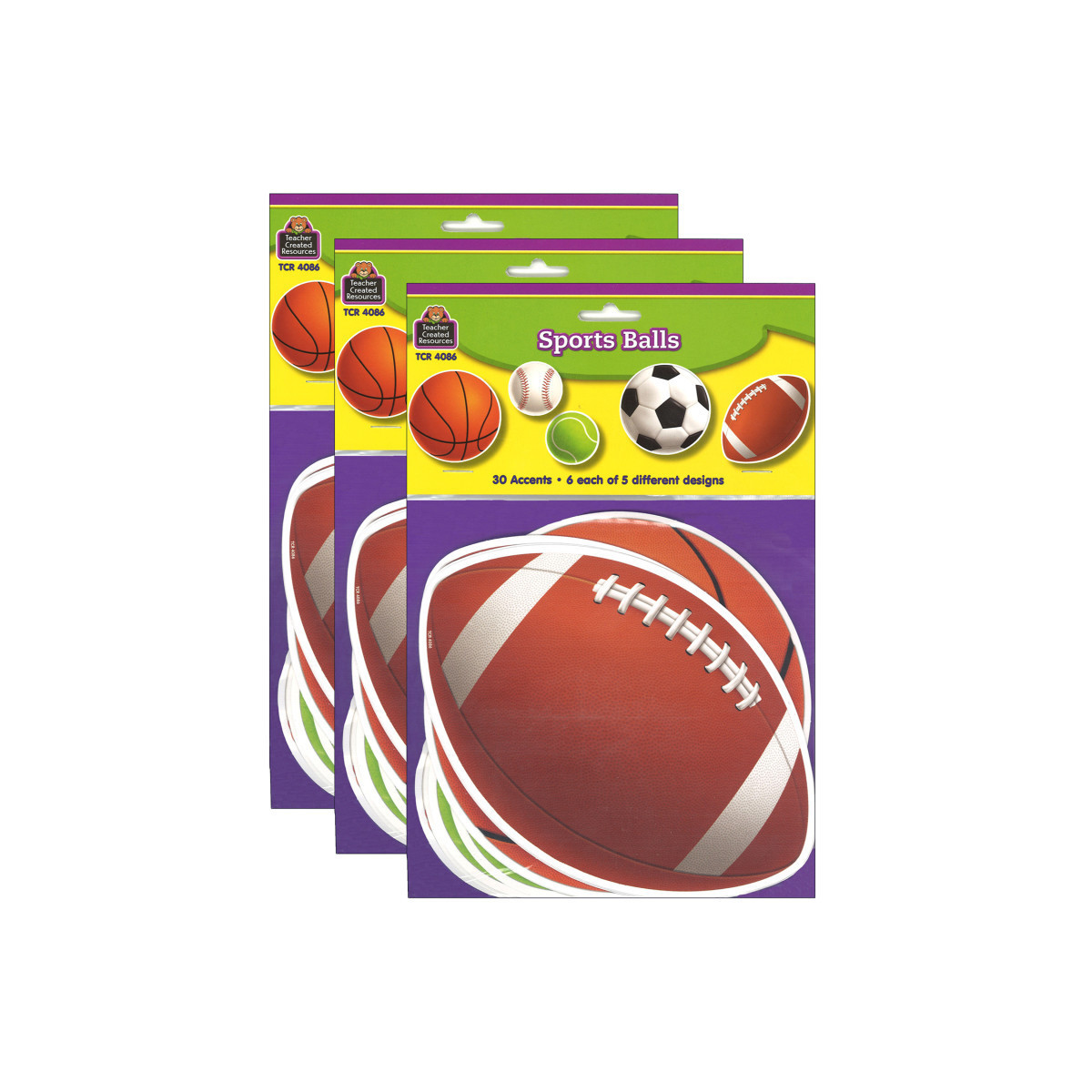 Use this decorative artwork to dress up classroom walls and doors, label bins and desks, or accent bulletin boards. Each pack contains 30 accents: 6 each of 5 designs. Sold as 3 packs for a total of 90 accents.