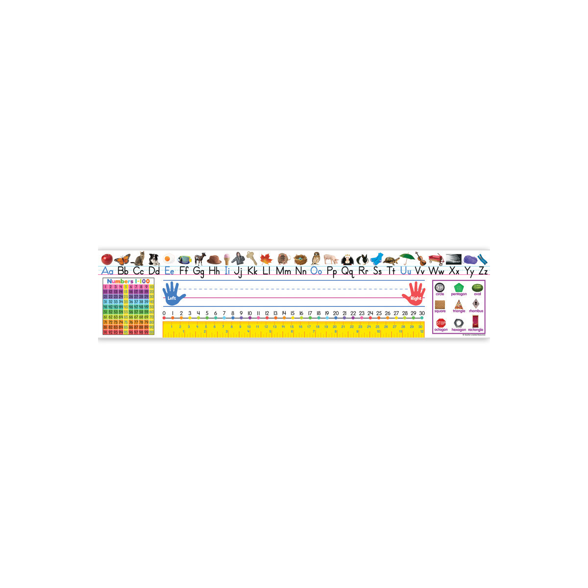 These super jumbo name plates provide plenty of space for both first and last names—plus a ruler and helpful information like colors, shapes, and math facts. Measures 18" x 4". Each pack includes 36 name plates.