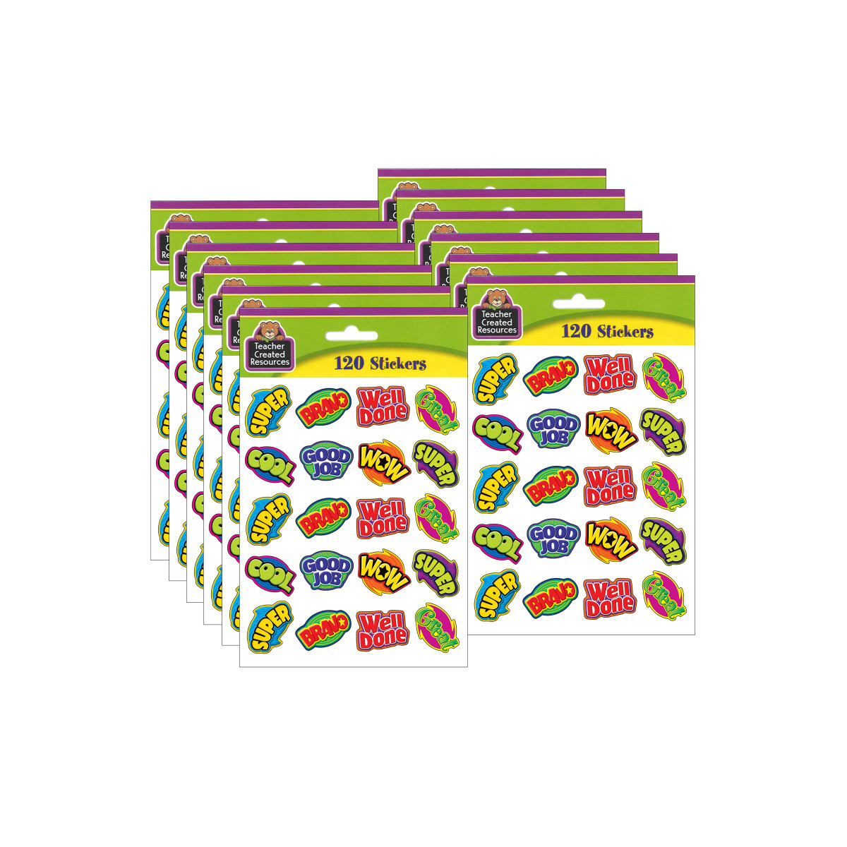 Motivate and reward students for good work. Each sticker is approximately 1 inch square. Teacher Created Resources stickers are acid-free. Each pack includes 120 Self-Adhesive stickers. Sold as 12 packs for a total of 1440 stickers.