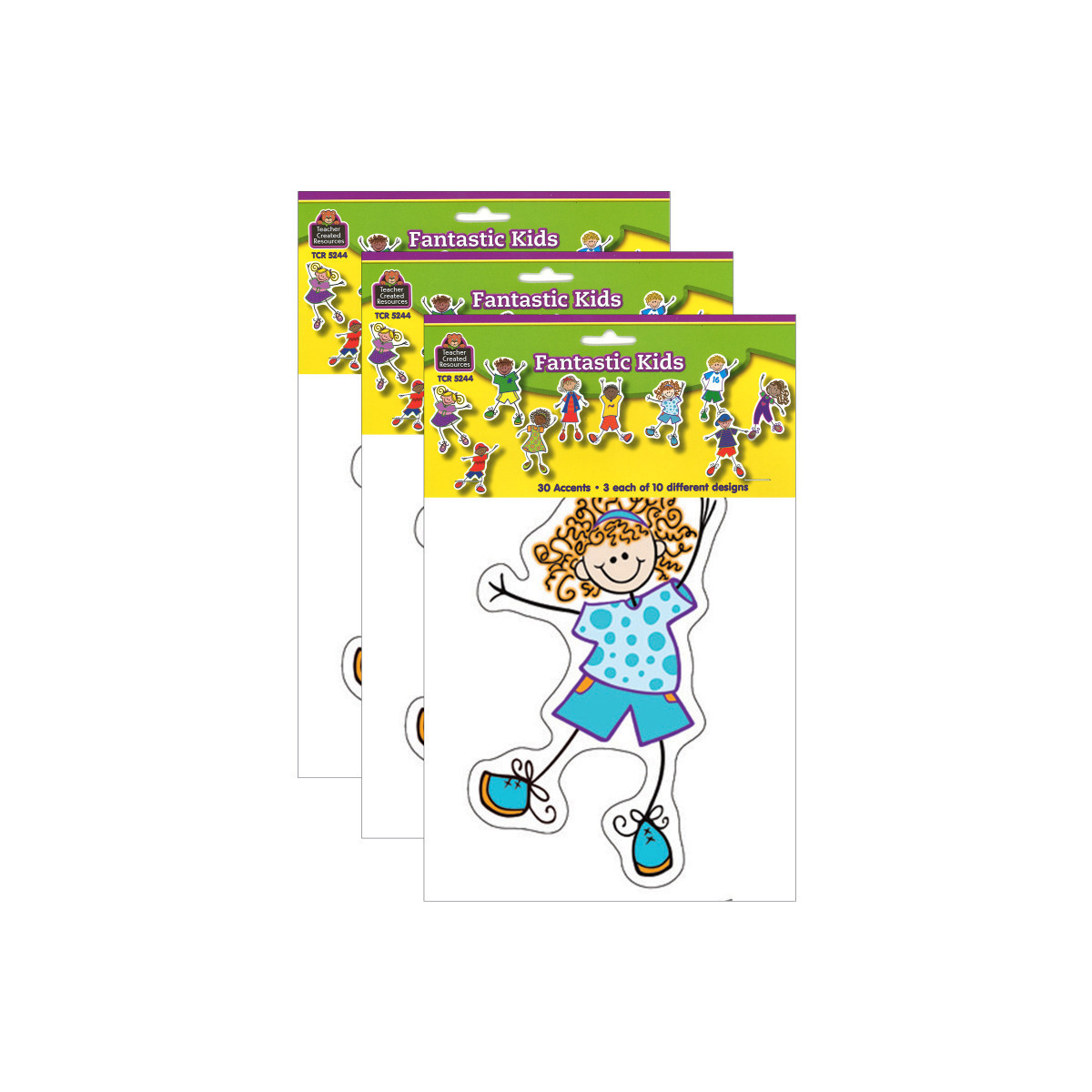 Use this decorative artwork to dress up classroom walls and doors, label bins and desks, or accent bulletin boards. Each pack includes 30 accents, 3 each of 10 designs. Sold as 3 packs for a total of 90 accents.