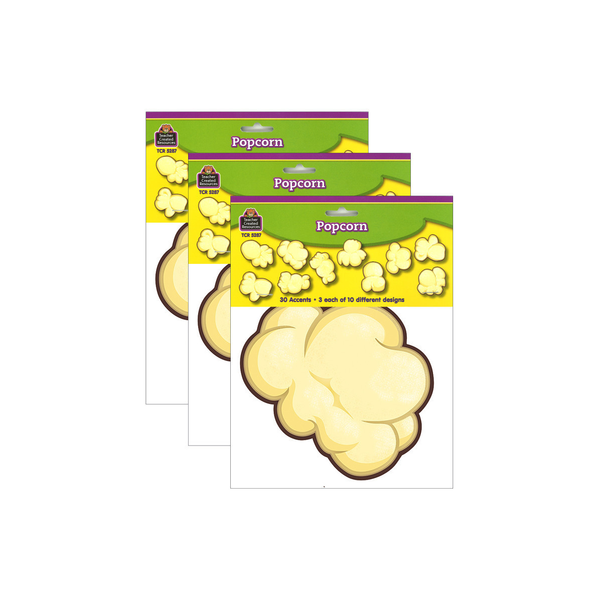 Use this decorative artwork to dress up classroom walls and doors, label bins and desks, or accent bulletin boards. Acid-free. Each pack contains 30 accents: 3 each of 10 designs. Sold as 3 packs for a total of 90 accents.