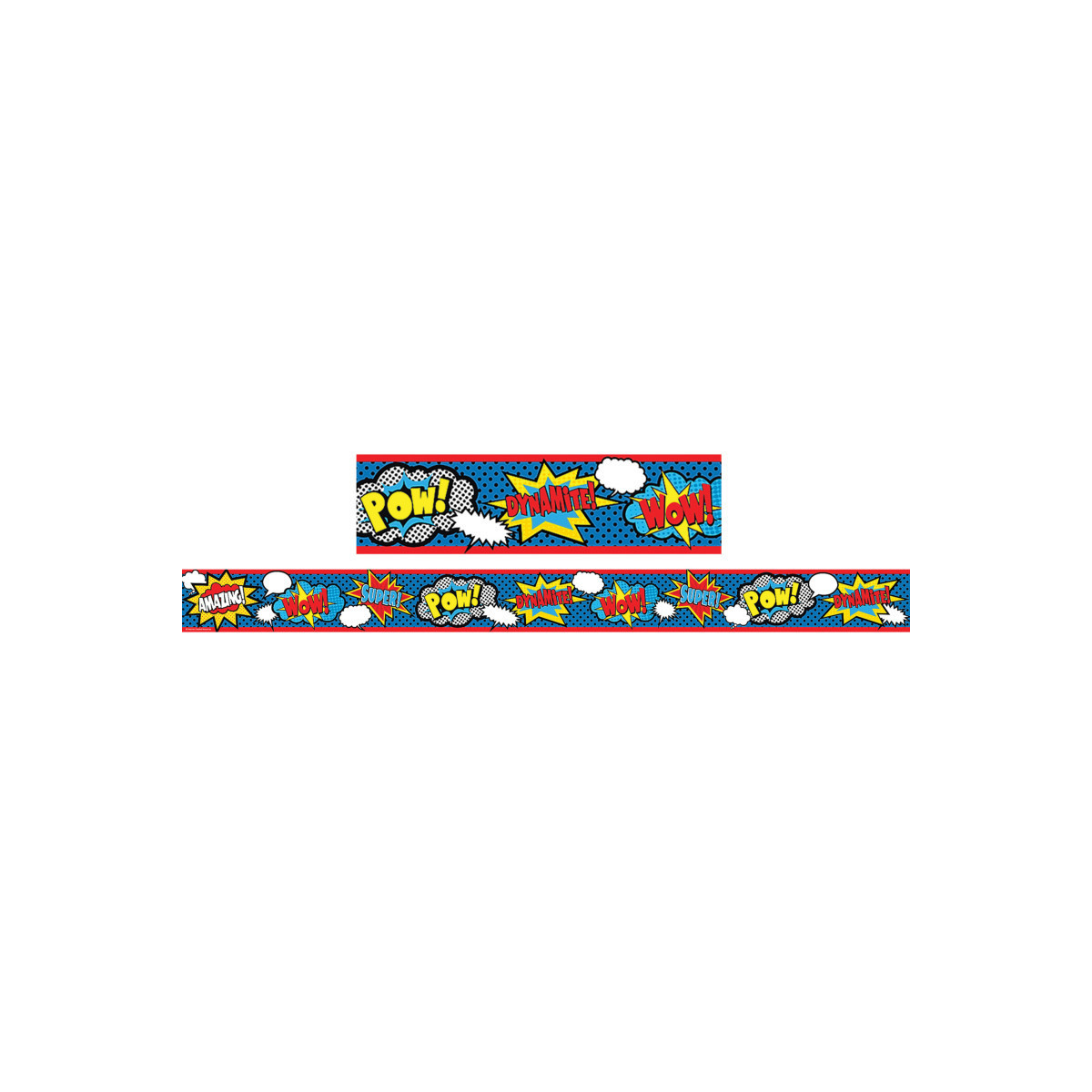 Use this colorful border trim to liven up your classroom! Create fresh looks for bulletin boards, windows, walls, and class projects. Layer them for extra impact. Or mix and match them with coordinating products (stickers, notepads, awards, etc.) to promote a classroom theme. Each pack has 12 pieces (3" x 35") for a total length of 35 feet of trim!