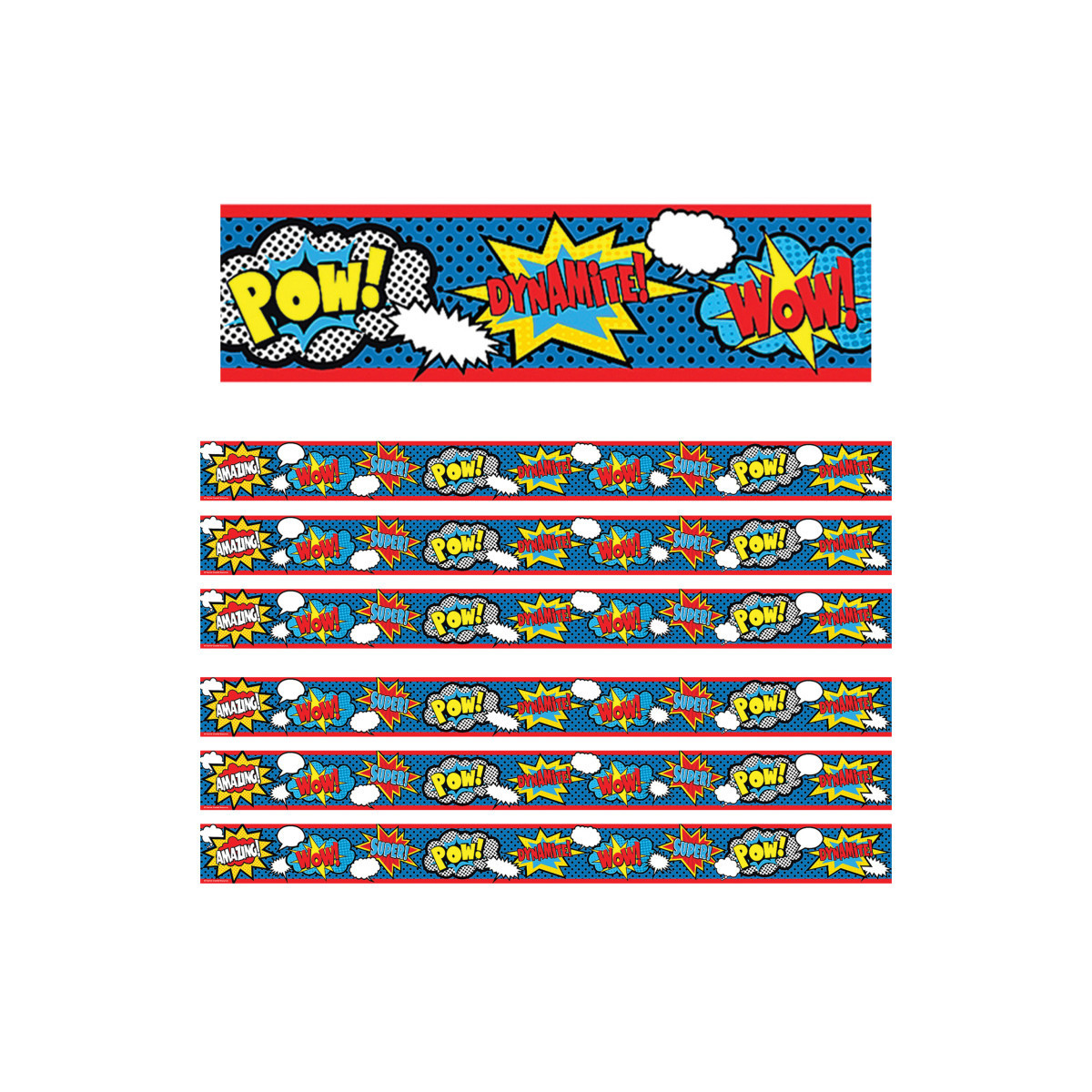 Use this colorful border trim to liven up your classroom! Create fresh looks for bulletin boards, windows, walls, and class projects. Layer them for extra impact. Or mix and match them with coordinating products (stickers, notepads, awards, etc.) to promote a classroom theme. Each pack has 12 pieces (3'' x 35'') for a total length of 35 feet of trim! Sold as a set of 6 packs, 72 pieces (210 feet) total.