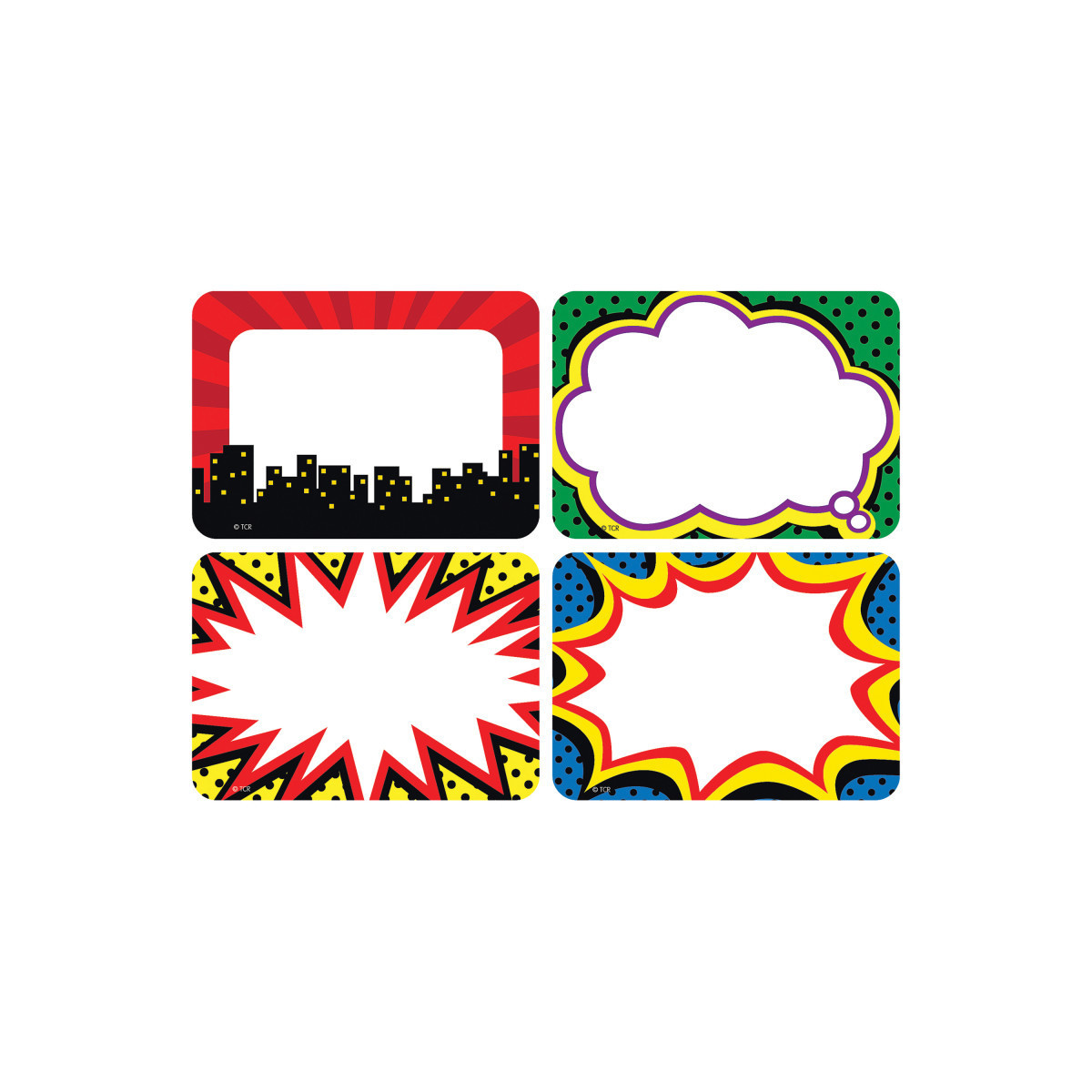 These name tags/labels are bigger than ever! The larger writing space comes in handy when using them for name tags, gift tags, or labels for student portfolios and cubbies. Measures approximately 3.5" x 2.5". Each pack includes 36 name tags.