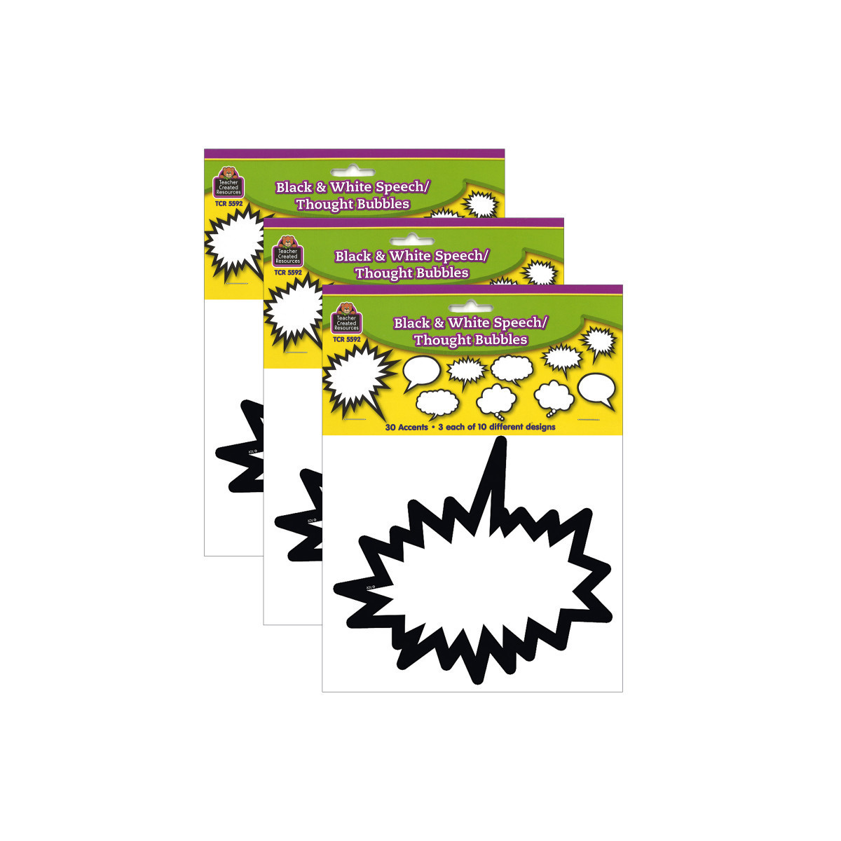 Use this decorative artwork to dress up classroom walls and doors, label bins and desks, or accent bulletin boards. Each accent measures approximately 6". Each pack contains 30 accents: 3 each of 10 designs. Sold as 3 packs for a total of 90 accents.